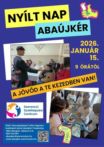 NYÍLT NAP AZ ABAÚJKÉRI SZAKKÉPZŐ INTÉZMÉNYBEN! Szeretnél egy olyan iskolát választani, ahol a tudás valódi szakmává válik? Gyere el Nyílt napunkra, és nézz körül nálunk testközelből!